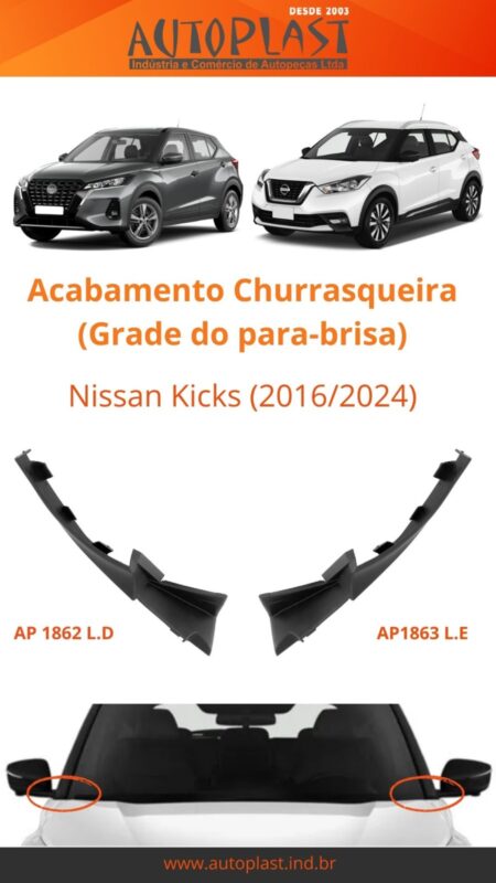 Acabamento Churrasqueira (Grade do para-brisa) Nissan Kicks (2016/2024)